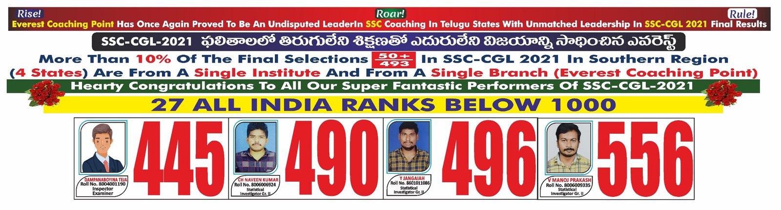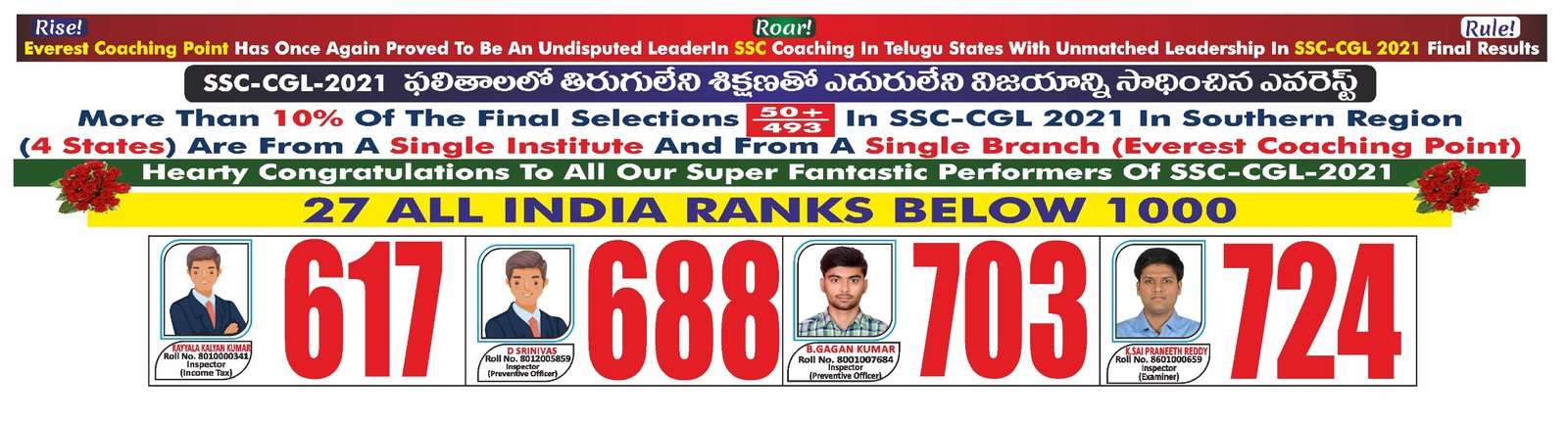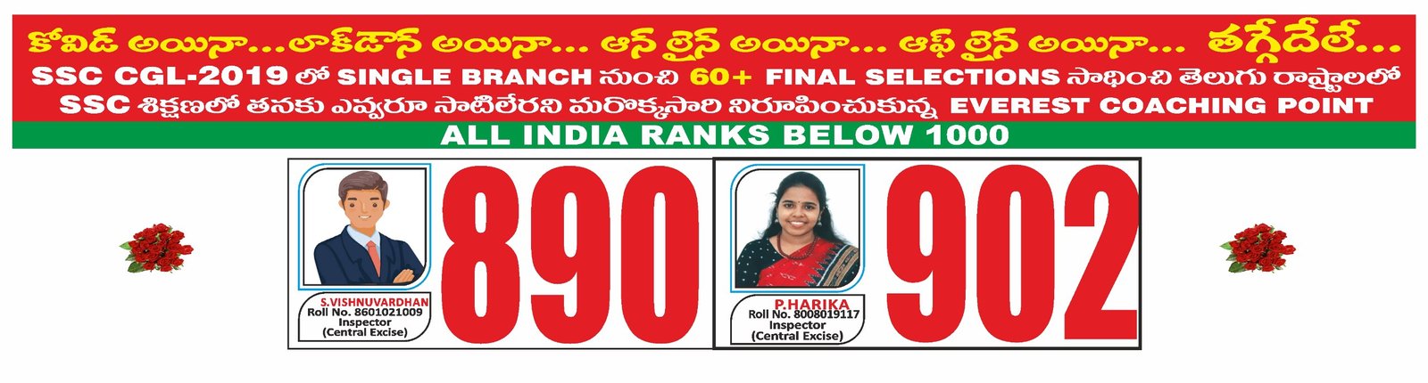 I was a student of Everest coaching point I got selected as Central Excise inspector in CGL 2023. This institute played a crucial role in my selection especially Raj Kumar sir arithmetic classes are very useful to solve the questions in less time and English Srinivasulu Reddy sir he is very experienced faculty. For me it is the best institute in Telugu states and highly recommend this institute for all SSC exams. Especially their class room handouts and mock tests are very useful. Thank you Everest coaching point